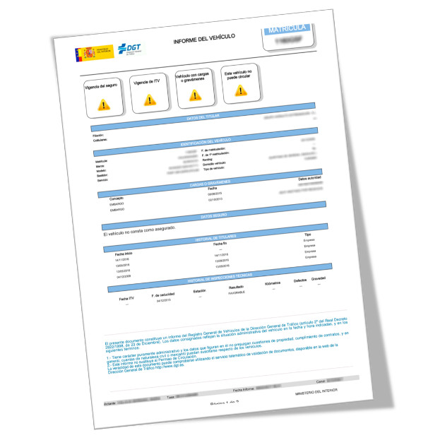 El informe reducido de un vehículo, emitido por la Dirección General de Tráfico (DGT), ofrece información sobre la fecha de la primera matriculación en España de dicho vehículo, así como si hay alguna incidencia que impediría su transferencia o su circulación.